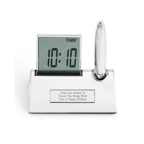 Image Name: ... -Clock-Engravable-Silver-Digital-Clock-Desk-Set-Things-Remembered-New